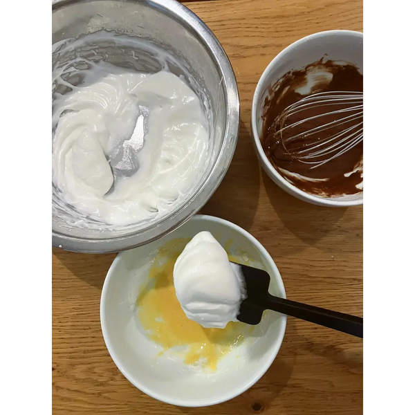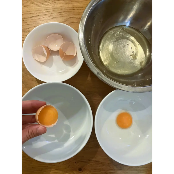 Another important point to be careful of when making your meringue is to keep your bowl clean. If there are any traces of egg yolk, water, or oil, it will be impossible to whip your meringue to the correct texture.