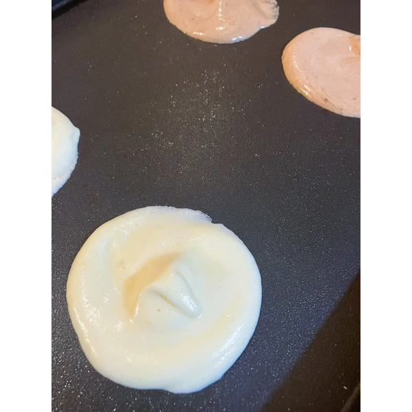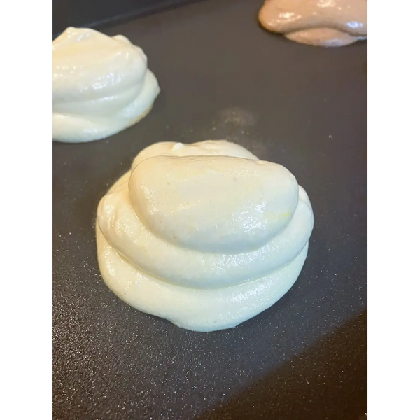 One of the most intimidating points about this recipe is making the meringue. The key to getting the fluffiest, most melt-in-your-mouth pancakes is to make sure you whip your egg whites for long enough. Make sure that you whip them completely to stiff peaks, or until when you lift your whisk out of the bowl and the peak does not move.
