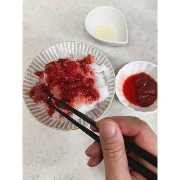 We will be making homemade syrup for our kakigori with real strawberries. It has the perfect balance of sweetness and sourness and just the right amount of fruity strawberry flavor – perfect for strawberry lovers!