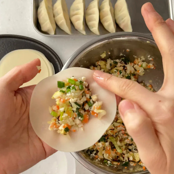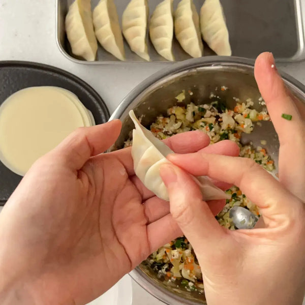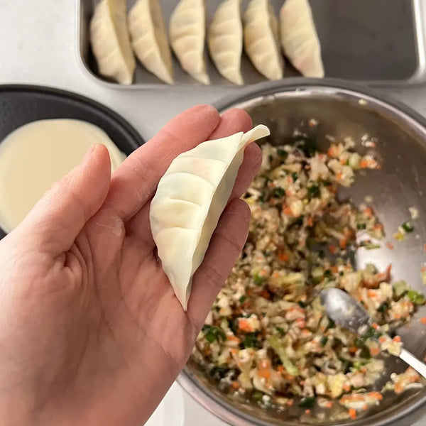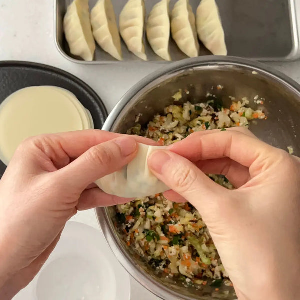 Gyoza involves some handcrafted-like preparation processes. Enjoy these steps, and you'll have satisfying vegetable Gyoza!