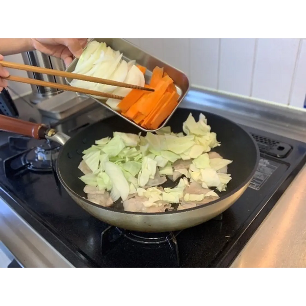 Yaki Udon is a Japanese stir-fried noodle dish featuring thinly sliced pork and vegetables seasoned in a thick and savory sauce. Traditionally, vegetables such as cabbage, carrots, and onions are used, but nowadays, people also use their favorite vegetables.