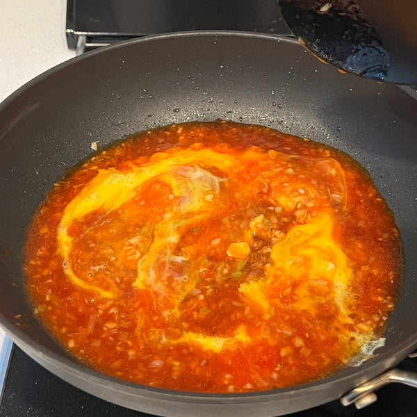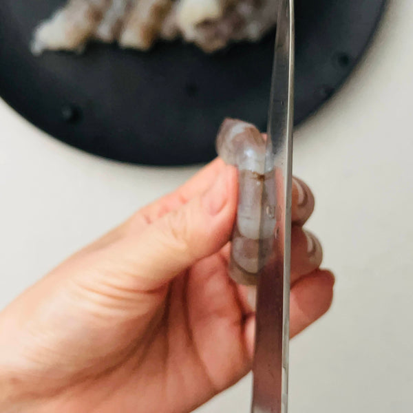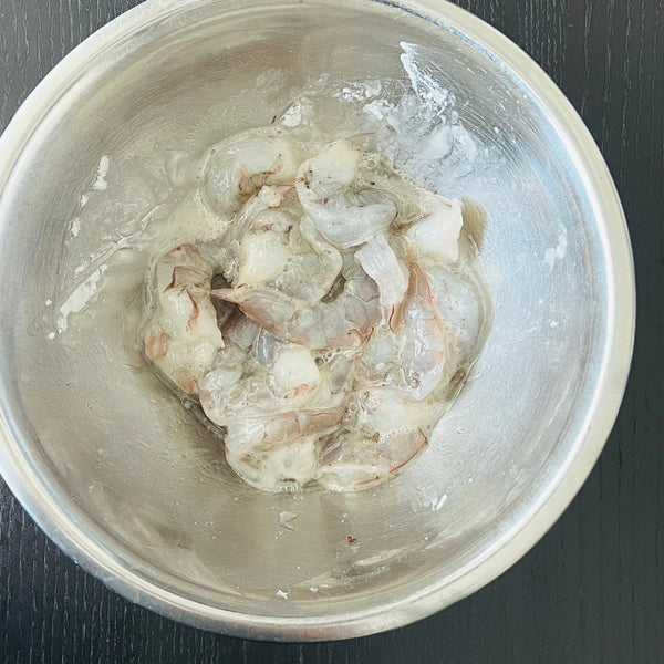 Chinese-inspired dishes are popular in Japan and often adapted to local tastes, like Japanese-style ebi chili. This dish features stir-fried shrimp and vegetables in a ketchup-based sauce, inspired by the Chinese dish gan shao xia ren (干焼蝦仁), which uses a spicy, non-ketchup sauce. Japanese-style shrimp chili gained popularity through Chinese chef Chen Kenmin, who introduced it at his restaurant Shisen Hanten in Tokyo in 1958. At the time, spicy flavors were not widely accepted in Japanese cuisine, so he added a twist to the original dish, adapting it to suit local tastes. To mellow the spiciness of doubanjiang, he added ketchup, which introduced a subtle sweetness, tanginess, and umami flavor. This adjustment made ebi chili accessible to everyone, from children to adults, and allows for easy customization of spiciness by adjusting the amount of doubanjiang while maintaining the dish’s appealing red color. The highlight of this dish is, of course, the plump and juicy shrimp. To ensure they retain their firm, snappy texture, there are a few important tips to follow: