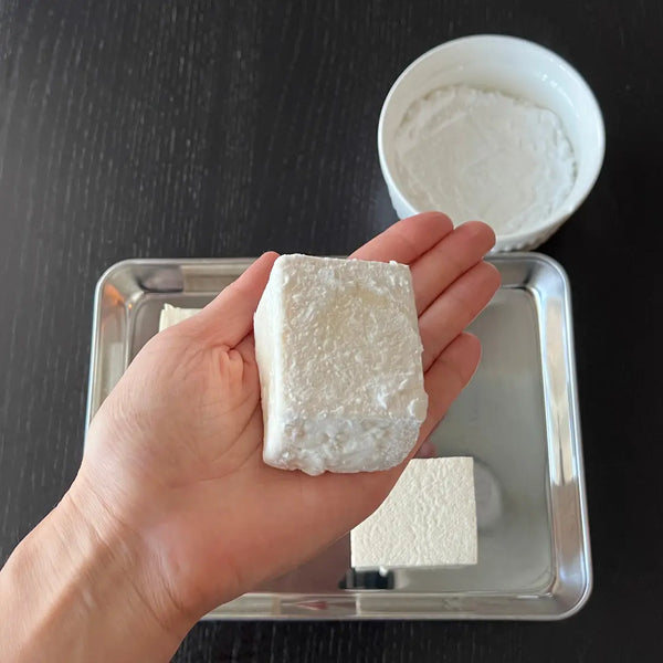 In ordinary grocery stores in Japan, you can find mainly two types of tofu: one is kinugoshi tofu, which is very soft and has a silky texture. It is often used in dishes like miso soup, smooth tofu desserts, and recipes where you desire a creamy and silky texture. The second type is momen tofu, which is firmer than kinugoshi and is commonly used for stir-fries and grilled dishes.