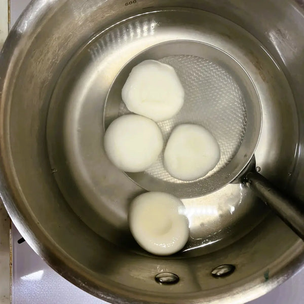 When shopping for kanten, you'll find it in four different forms: powder, stick, thread, and flakes. For this recipe, powdered kanten is used as it is the easiest for beginners to work with and evenly dissolves in water.