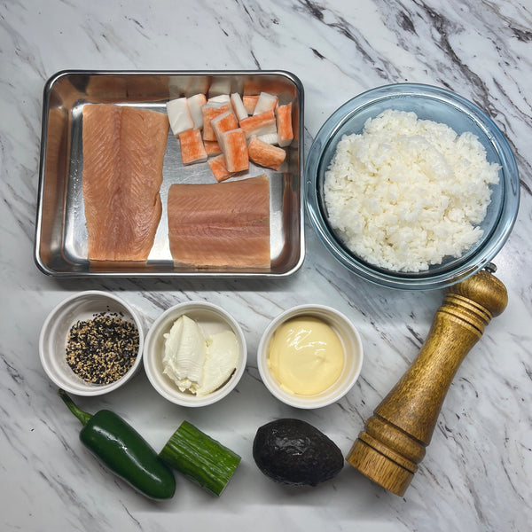 While salmon and crab are classic, there are plenty of other topping options, such as tuna, shrimp, scallops, or even tofu can be used. Some versions include spicy tuna, teriyaki chicken, or sweet corn and cheese. A final drizzle of spicy mayo or unagi (eel) sauce ties everything together.