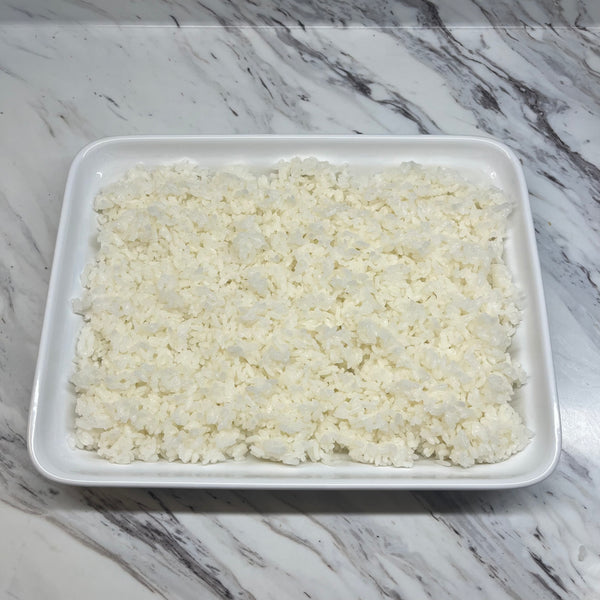 Once the mixture is spread evenly over the rice (an ice cream scoop helps with this), the whole dish is baked until the top is golden and lightly crisped. It’s then scooped onto small pieces of nori and eaten like a mini hand roll. You can also serve it with fresh cucumber, avocado, pickled ginger, or jalapeño on the side for extra flavor and kick.