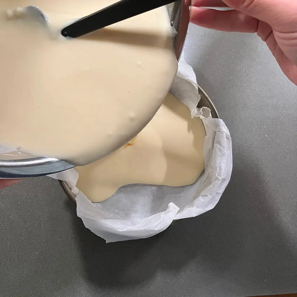 It is very important to know your oven. Make sure to preheat enough and bake it until the surface turns brown. I recommend checking the oven for the last 15 minutes. Ideally, the surface should be nice brown, and the cake should rise like a souffle cheesecake.