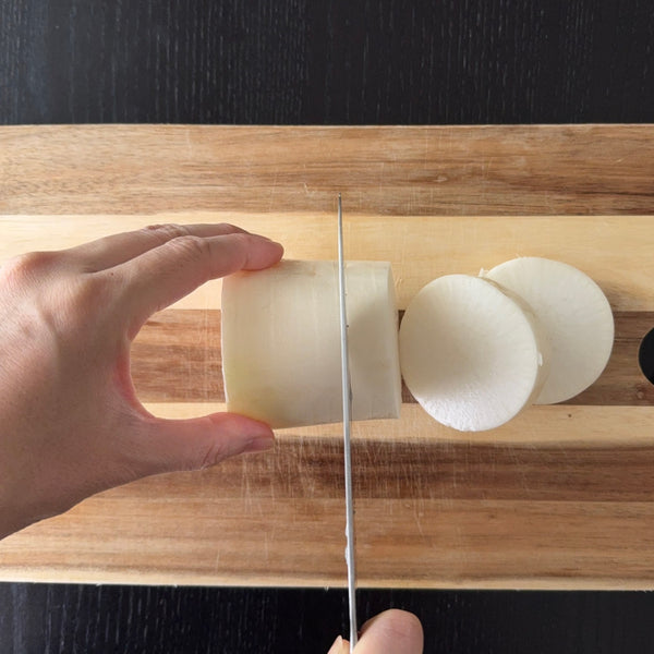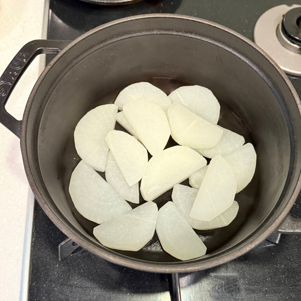 • Pre-boil the daikon in rice water for the softest, juiciest texture.