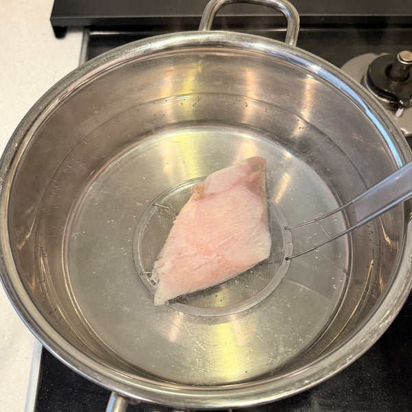If ara is not available, buri fillets also work. Choose fillets from the belly side for better fat content, which prevents the fish from drying out during simmering. This ensures the final dish stays tender even after long cooking.