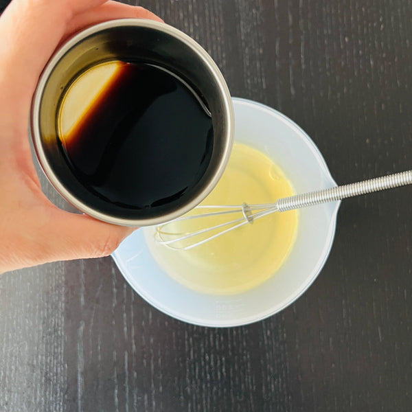 In a small bowl, combine soy sauce, mirin, cooking sake, and sugar. Stir until the ingredients are well-mixed.