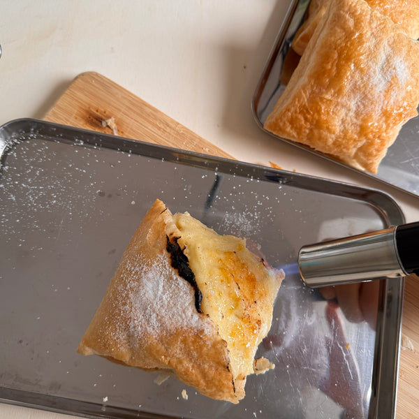 Whether you're a fan of classic French desserts or looking to impress with something new, this crème brûlée mille-feuille is the perfect treat. With its flaky pastry, silky custard, and crackly caramel top, every bite is pure magic. Give it a try! You’ll feel like you’ve brought a bit of Osaka home.