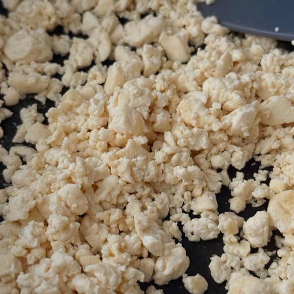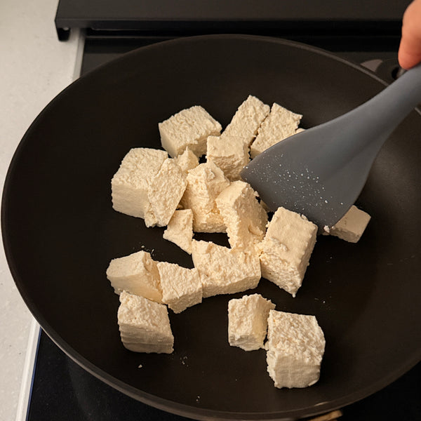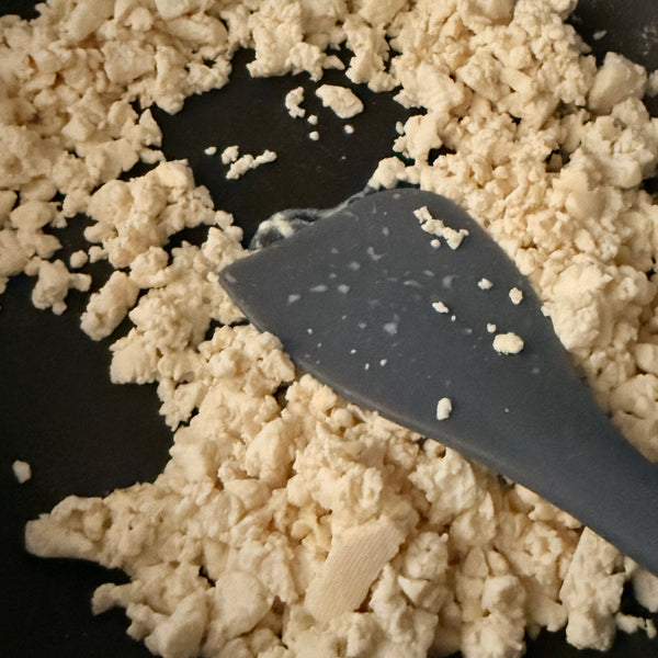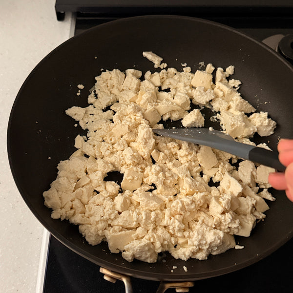 - Stir-fried crumbled tofu - Heat a pan, add dehydrated tofu, crumble with a spatula while cooking, and then mix in the seasoning.
