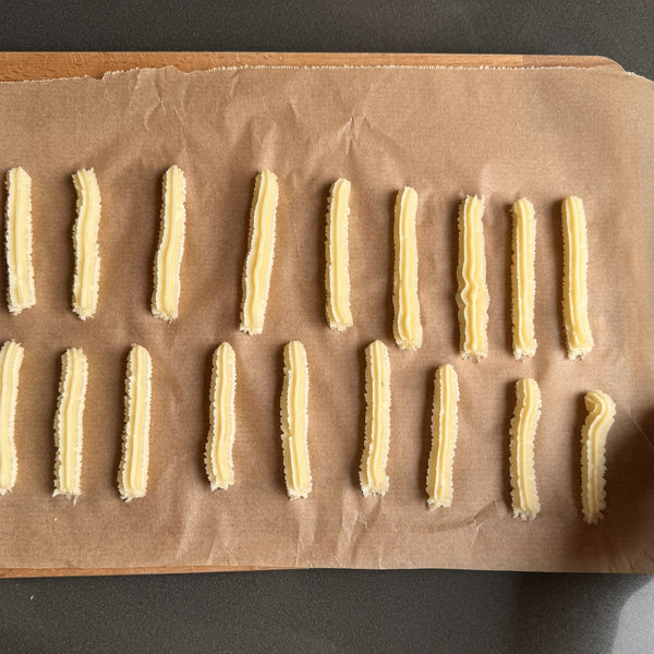 - To prevent sticking, carefully lower the entire baking sheet into the oil instead of dropping individual churros in.