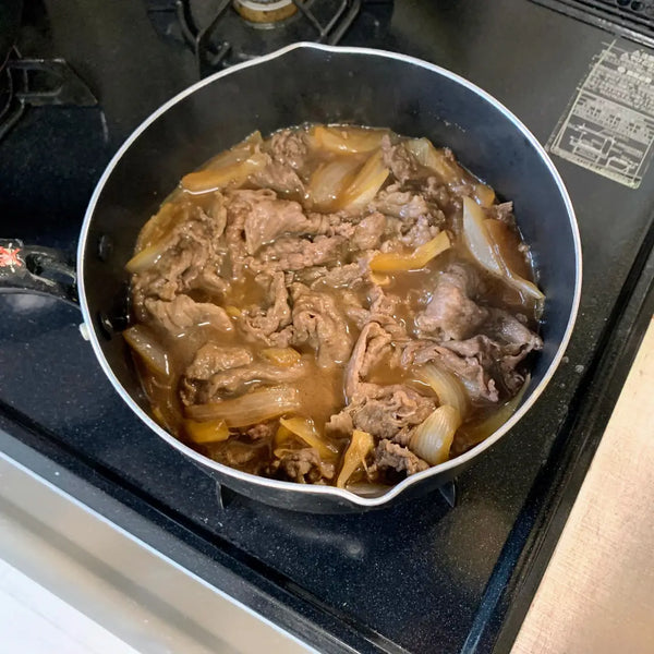 In this recipe, we are going to introduce a version of gyudon served with onsen tamago. Although onsen tamago may seem similar to a half-boiled egg, the egg white is soft and jelly-like, while the yolk is moderately firm. It makes the perfect topping for gyudon!
