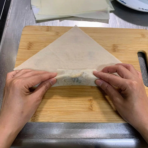 To learn how to fold egg rolls, start by placing an egg roll wrapper on a clean surface with a corner facing you. Spoon a small amount of your desired filling onto the center of the wrapper, then fold the bottom corner over the filling, tucking it in tightly. Next, fold in the left and right corners to create a pocket, and continue to roll the egg roll away from you until you reach the top corner. Before sealing, lightly wet the top corner with water to help it stick. This technique ensures that your egg rolls are securely wrapped and ready for frying or baking, making it easy to enjoy delicious homemade harumaki!