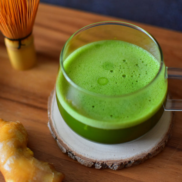 Pour the whisked matcha into the cup with the kombu, ginger, and umeboshi mixture. Stir well and enjoy!