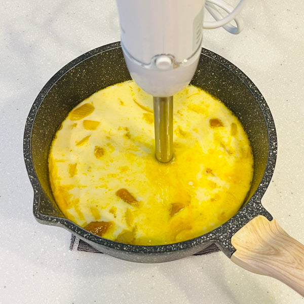 We recommend using an immersion blender to purée the cooked ingredients. However, if you don’t have one, you can mash them with a spatula for a chunkier texture that lets you savor the individual ingredients.