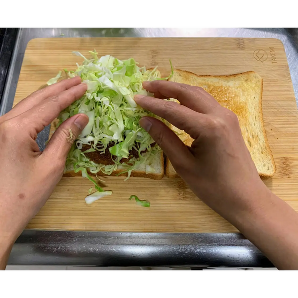The other ingredients in tonkatsu sandwich also play important roles in the sandwich. The shredded cabbage not only adds extra crunch to the sandwich but also gives the sandwich a bit of a fresh taste and makes it less heavy. The use of tonkatsu sauce makes the sandwich taste more savory, and it truly brings the whole sandwich together.