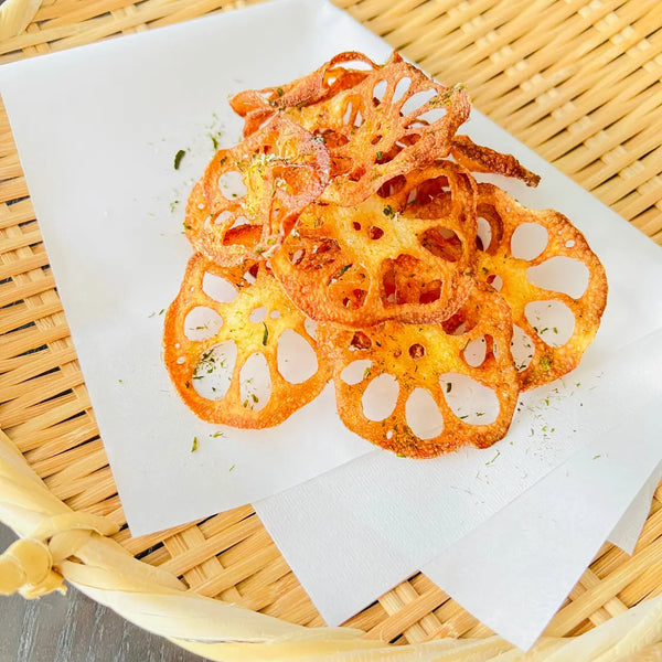 Lotus root is rich in Vitamin C and dietary fiber, so lotus root chips are not only delicious but also highly nutritious. If you are looking for tasty snacks that are healthier, then lotus root chips are perfect.