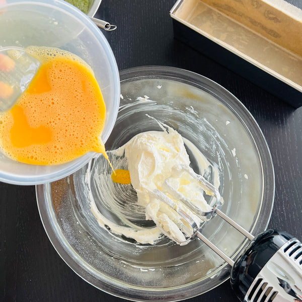 Once you’ve enjoyed the regular matcha pound cake with kuromame, you might want to try a twisted version. Matcha marble pound cake is one option. After preparing the batter, divide it into two portions. Add matcha to one portion to create matcha batter. Combine the two portions without fully blending them, leaving a marbled effect.