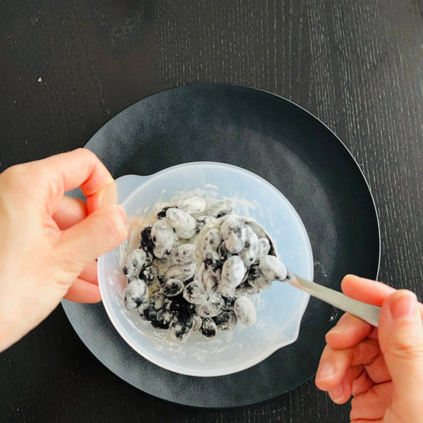 Kuromame itself has a slightly sweet and nutty flavor. When cooked, they become tender with a smooth texture, often with a subtle hint of soy. In most cases, kuromame is simmered with sugar and a bit of soy sauce. When combined with matcha pound cake, sweet kuromame adds a comforting sweet and nutty accent to the cake. In terms of health benefits, kuromame is rich in antioxidants and high in protein, making it a delicious and nutritious addition.