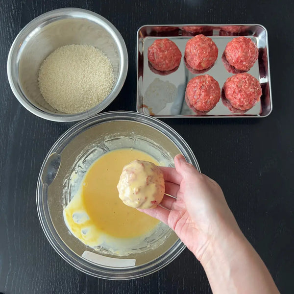 In this recipe, we'll show you how to craft butcher-quality Menchi Katsu at home. Unlike recipes that incorporate cabbage to lighten the dish, ours focuses on delivering a meaty and juicy texture directly from the ground meat.