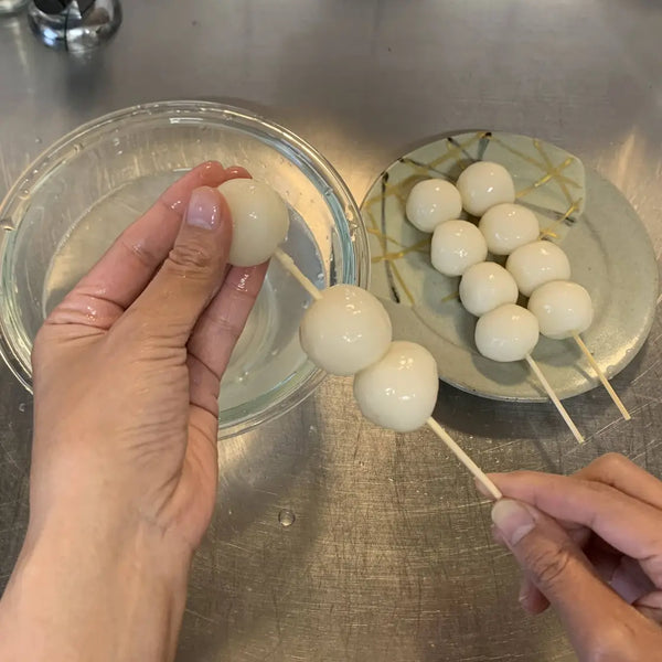 Various cooking methods are used, including boiling, steaming, and baking the surface of the dango after boiling.