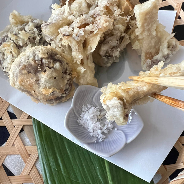 Enjoy a taste of seasonal Japanese tempura, celebrating the simplicity and natural flavors of these delightful mushrooms!