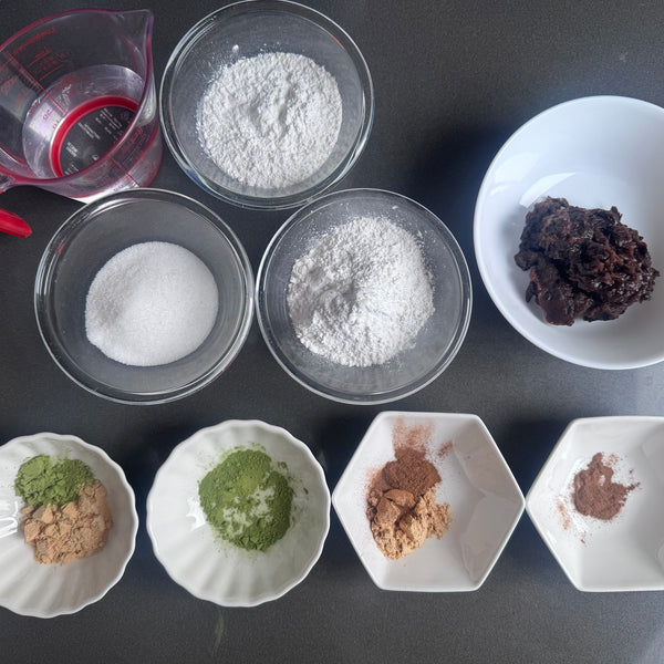 Both joshinko and shiratamako (types of rice flour) are used in making nama yatsuhashi to achieve the perfect balance of texture and consistency in this traditional Kyoto sweet. Each rice flour contributes unique characteristics that enhance the quality of the dough.