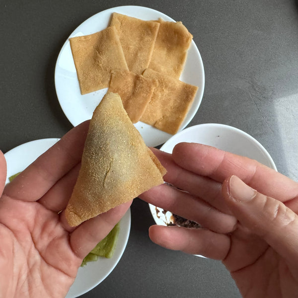 The unfilled version of nama yatsuhashi is a pliable sheet of chewy dough, often enjoyed for its simple, delicate flavor. A filled variant takes this soft dough and folds it into a triangular shape, traditionally filled with sweet red bean paste (anko), although there are modern variations, such as matcha cream or seasonal fruit fillings.