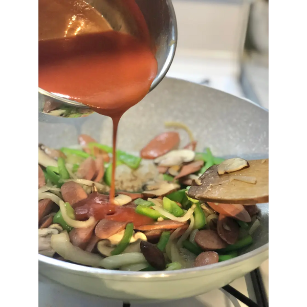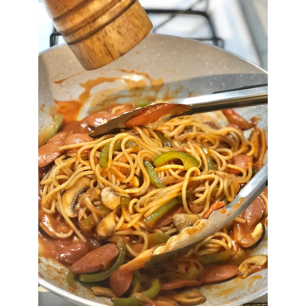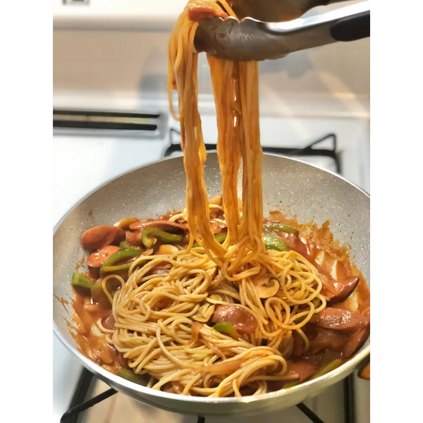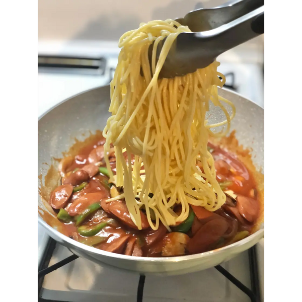 In this recipe, we’ll share the most classic version of Napolitan using sausages, onions, bell peppers, and mushrooms. But you can totally make Napolitan spaghetti your own. Do you want it extra spicy? Throw in some chili flakes or a splash of hot sauce! Do you prefer to put in more veggies? Go wild with your favorites like zucchini, carrots, or spinach. Would you like to top it with a sunny side up egg and enjoy spaghetti with runny egg yolk? Go for it! The possibilities are endless!