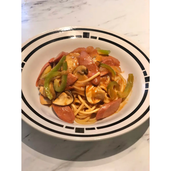 Napolitan spaghetti is served as a simple and casual dish in Japanese cafes, family restaurants, and home-cooked meals.