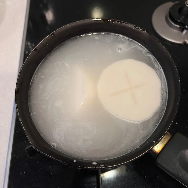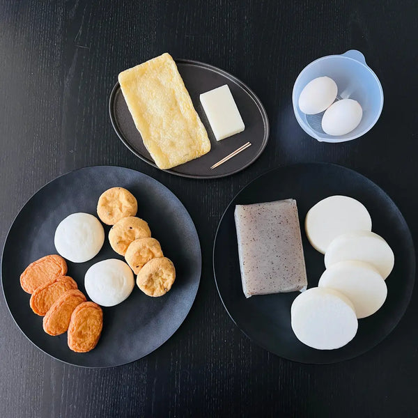 • Add ingredients in the right order – Start with items that need more time to soak up the soup, such as daikon, konnyaku, and boiled eggs. Boiled oden ingredients like eggs benefit from longer simmering, while delicate items like Hanpen should be added toward the end to maintain their soft, fluffy texture.