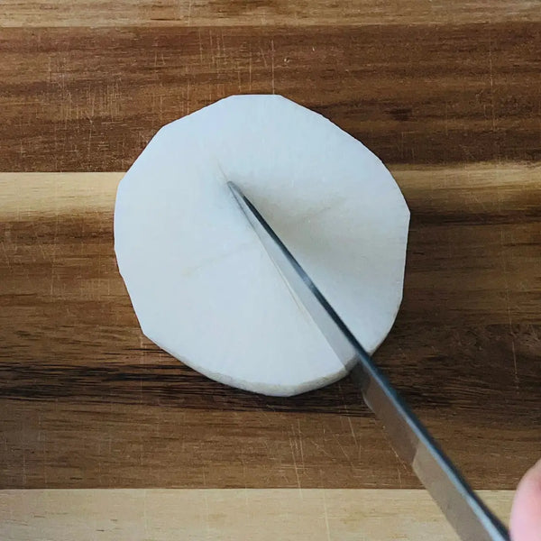 • Score daikon and konnyaku or konjac lightly – This allows them to absorb the broth better, giving each bite a burst of umami.