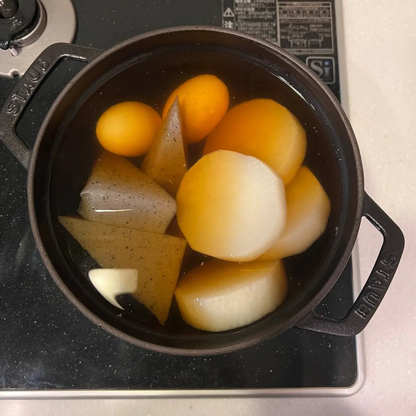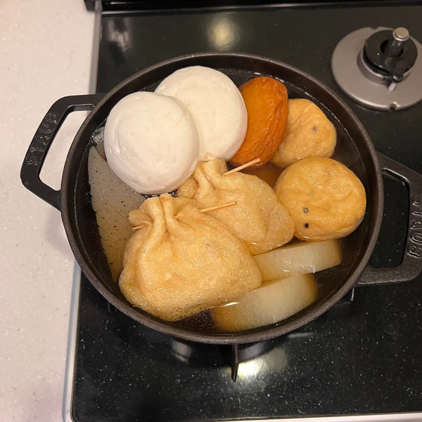 Common ingredients include daikon, boiled eggs, and various fish cakes, but many households like to get creative. Some add sausage, cabbage rolls, beef tendon, octopus, or mochi kinchaku (rice cake wrapped in deep-fried tofu), turning the dish into an assorted oden feast. This adaptability is part of what makes oden so charming and fun to make.