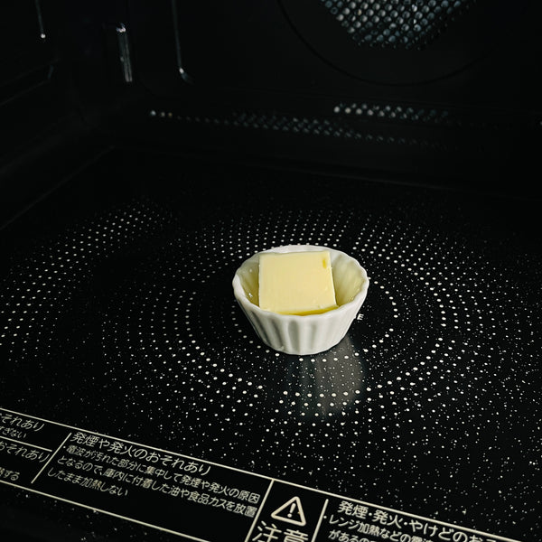 Leave 10g of butter at room temperature to soften, or microwave it for 15-20 seconds until spreadable. Keep the 5g butter refrigerated until use.
