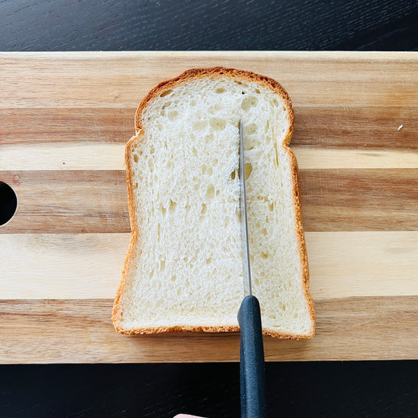 The bread used should be sliced shokupan, a type of Japanese milk bread. If possible, round-top shokupan is preferred over the Pullman type, as its lighter and crisper texture when toasted pairs better with the rich combination of anko and butter. The butter should be spread evenly over the toasted surface, rather than being placed in chunks.