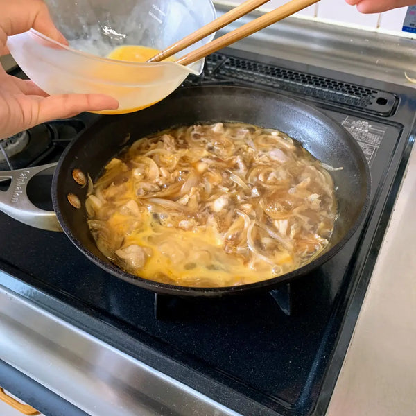 Today, outside of the home, oyakodon can be found at udon or soba noodle restaurants and in the bento corner of supermarkets and convenience stores. Since raw or soft-boiled eggs are preferred in Japan, the tenderly cooked egg is key to a delicious oyakodon. The harmony of half-cooked egg, well-seasoned chicken, and white rice together is superb.