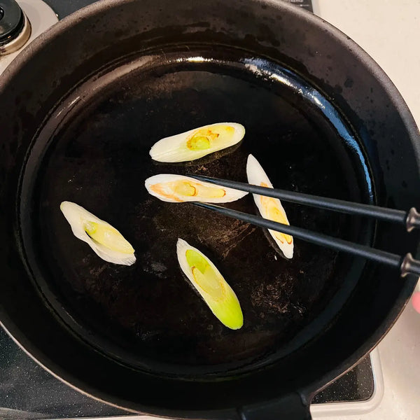 Ingredients: It is common to add Japanese leeks to Kanto-style Sukiyaki. Around the beginning of the Meiji period, people were eating "Gyu-nabe," but as refrigeration technology and meat processing methods were immature, the meat had a strong smell. It is said that Japanese leeks were added to get rid of it.