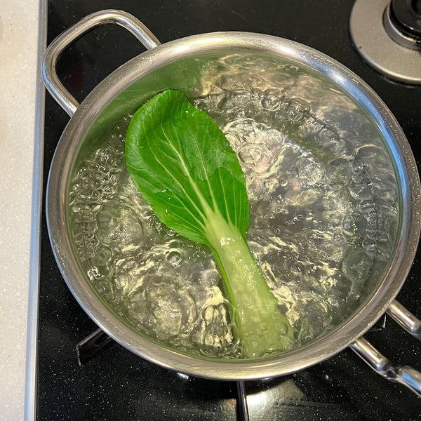 Bring a pot of water to a boil and blanch the bok choy for about 30 seconds. Immediately transfer it to a bowl of cold water to stop the cooking process. Once cooled, drain well and set aside until Step 7.