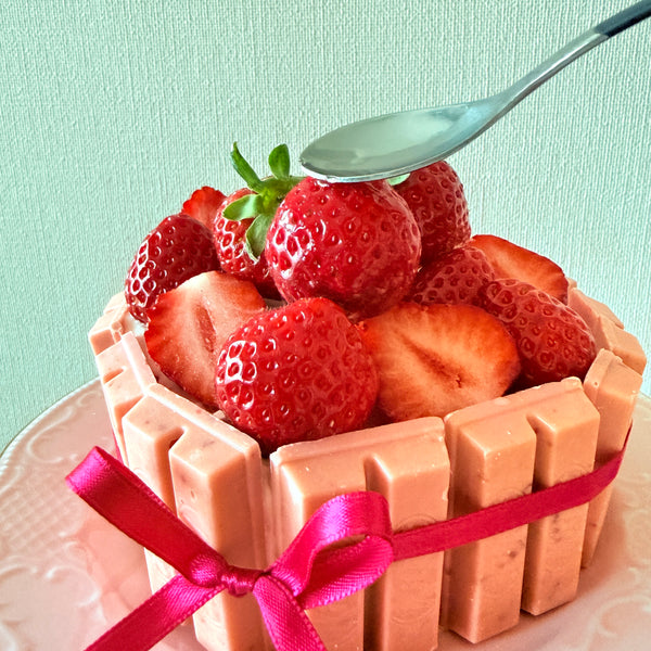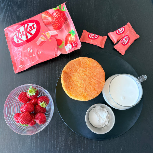 I made a classic Japanese shortcake as the base and decorated the sides with KitKats.