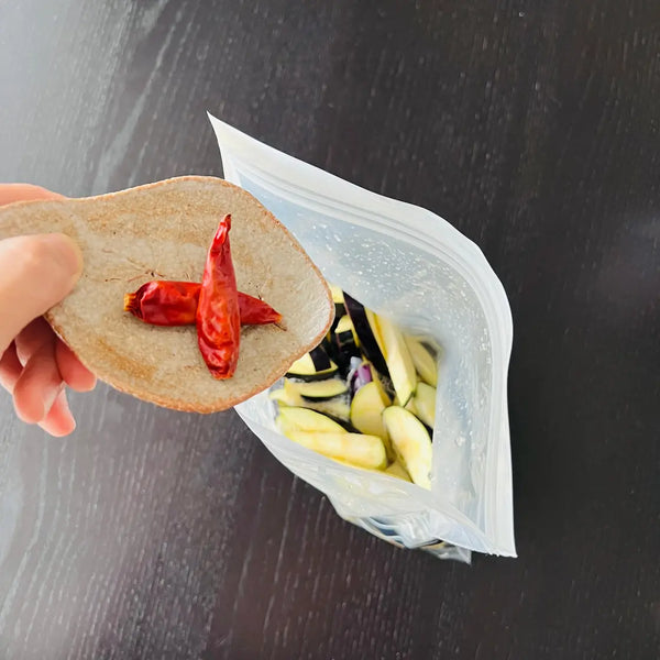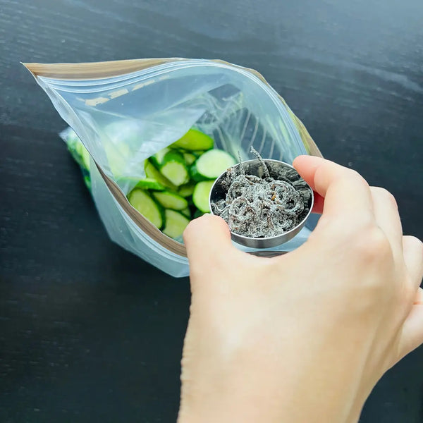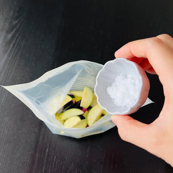 When it comes to making this style of tsukemono at home, all you need to prepare is only vegetables you like and sea salt. For the “salt”, we recommend you use natural sea salt because it permeates easier into the ingredients than regular salt. It also gives the vegetables a unique savory taste. Just using salt is enough to make simple Tsukemono, but if you want to take things up a notch, you can add some other flavors like kombu seaweed, chili peppers, yuzu, ginger, sesame seeds, etc.